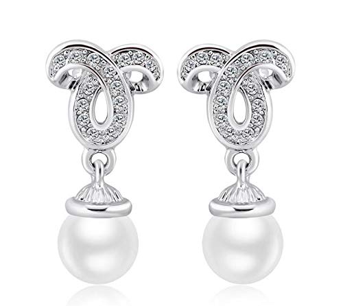 ZMC Women's Rhodium Plated Alloy Austrian Crystals and Imitation Pearls Drop Earrings, Silver/White