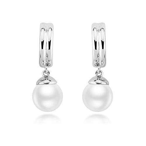 ZMC Women's Rhodium Plated Alloy Austrian Crystals and Imitation Pearls Drop Earrings, Silver/White
