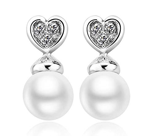 ZMC Women's Rhodium Plated Alloy Imitation Pearl and Austrian Crystals Drop Earrings, Silver/White