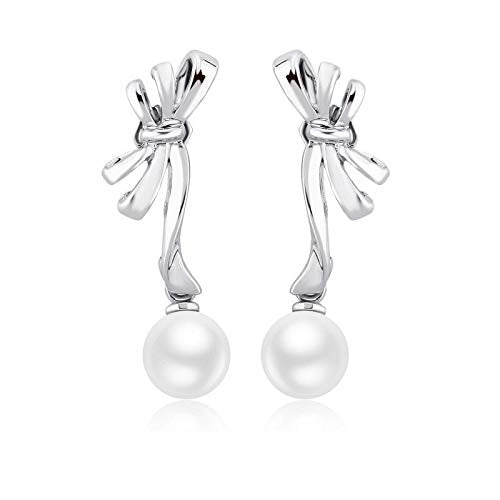 ZMC Women's Rhodium Plated Alloy Imitation Pearls Drop Earrings, Silver/White