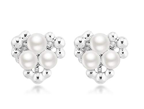 ZMC Women's Rhodium Plated Alloy Imitation Pearls Stud Earrings, Silver/White
