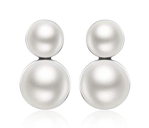 ZMC Women's Rhodium Plated Alloy Imitation Pearls Stud Earrings, Silver/White