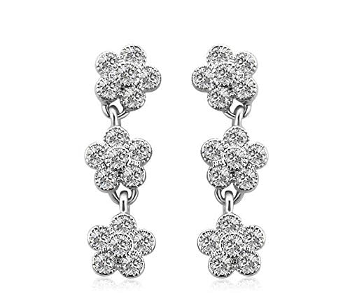 ZMC Women's Rhodium Plated Austrian Crystals Dangle Earrings, White