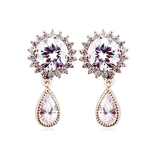 ZMC Women's Rose Gold Plated Alloy Swarovski and Austrian Crystals Drop Earrings, Rose Gold/White
