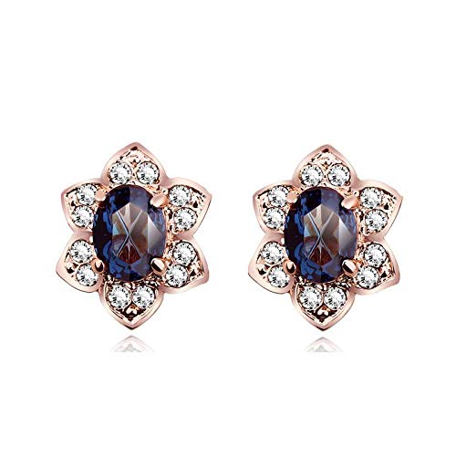 ZMC Women's Rose Gold Plated Alloy Swarovski and Austrian Crystals Stud Earrings, Rose Gold/Blue Black