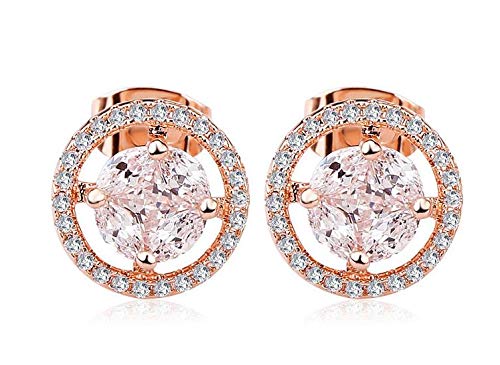 ZMC Women's Rose Gold Plated Alloy Swarovski and Austrian Crystals Stud Earrings, Rose Gold/White