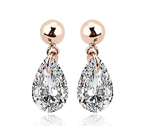 ZMC Women's Rose Gold Plated Swarovski Crystals Dangle Earrings, Rose Gold/White